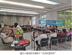 经过近一个月的练习之后,大家已经能够准确回忆起手指操的各个动作,但有不少成员反应“东风吹西风吹”的动作还是难以掌握,小组主持人鼓励大家勤加练习,帮助大家提升信心。