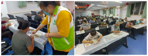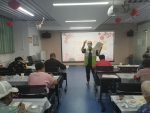 因场地有限,加上疫情防控需要,本次活动分为上午、下午两个场次进行。一开场,社工简单说明下活动的流程,随后逐一介绍绘制团扇所使用的材料,提醒大家全程要佩戴好口罩。