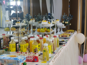 # 下午茶+手作蛋糕 # 放松时刻,大家品尝着慕斯蛋糕块、纸杯蛋糕、水果和饮料,并在烘焙师的指导下制作小蛋糕。在此过程中,大家谈笑风生,进一步增进对彼此的了解,气氛温馨而又美好。