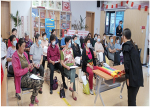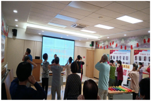 活动过程中,老师教授大家柯尔文手势及简单的音乐律动,并进行一对一指导。大家在掌握了技巧之后,跟着老师唱《鸭罗罗 进笼来》,“金罗金罗拜拜、银罗银罗拜拜,鸭罗罗进笼来,索罗索罗穿草鞋……”大家分成两队进行接唱,将现场推向了高潮。社区骨干郝阿姨表示:“唱起歌谣,整个人都轻松了,所有烦恼都拜拜!”
