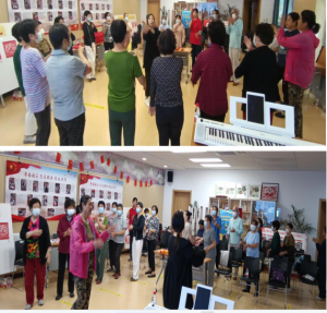活动接近尾声时,老师带领大家学习歌曲《这世界有那么多人》。“这歌词写的太唯美啦!”刘阿姨激动地说,还忍不住哼唱起来“晚风中闪过,几帧从前啊,飞驰中旋转,已不见了吗……”