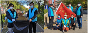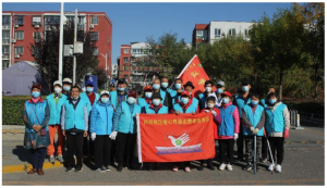 志愿者们兵分两路,一路在党员赵和平、侯志刚等人的带领下,沿着北京农商银行向南走,捡拾沿途垃圾。在二社区东门门口,大家热火朝天地分头忙活起来,有的擦拭宣传栏,有的擦栏杆,有的在铲小广告……一番忙碌下来,二社区门前的景象焕然一新,大家的脸上也露出了满意的笑容。随后,他们继续往前走,在社区健身小广场那里,又将健身器材擦拭干净。另一路在立德社工和残疾人党员蔡文学、志愿者李敏等人的带领下沿着北京农商银行向西出发,一路不停地捡拾着人行道上和绿化带里的白色垃圾。最后,两路人马在二社区的南门处胜利会师、合影。