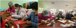 学员朋友们在体验钉子绕线画魅力的同时,彰显了爱党爱国的朴实情怀。线在钉子间缠缠绕绕,情感在指尖浓情挥洒,学员们以自己的方式向党的二十大诚挚献礼。