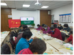 经过社工一系列的手工程序讲解之后,阿姨们明白了旧物如何利用,于是纷纷动起手来,并勇于发挥自己的想象力,融入到自己的创作当中。期间,大家互相帮助,你帮我拿胶水,我帮你整理桌面,整个活动室一片欢乐和谐的气氛。