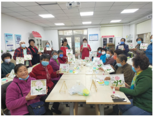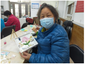 虽然作为样品的装饰画里面是单一的一朵花,但是大家巧手制作出来的花几乎都不相同,有雨中的花,有长在草坪里的花,还有星空下的花……可见大家都颇费了一番心思呢。“我虽然不是美术专业的,做的也不怎么好看,但是就喜欢做手工。下次有这种活动,我还要参加。”一位阿姨高兴地说道。