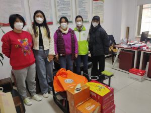 在大家出发之前,服务中心事先与社区进行线上沟通,了解社区目前的状况与困难,敲定匮乏物资,针对社区最为紧迫的物资需求为其提供必要支持。到达各社区后,服务中心的社工们将携带的口罩、办公用品、加班能量体力补充饮料等物资交到社区负责人手里,并对他们在防疫工作中的坚守与付出表示敬佩。同时,社区对大家的到来与支援深表感谢,“现在受疫情影响,社区太忙了!各种物资用的也很快,你们一来这下可够用了。”“社区社工已经连轴转了6天,一直奋战在社区一线,急需功能饮料蓄力啊!”自我调侃中透着满满的艰辛与坚持。辛苦了,社区社工们!三间房社区社会工作服务中心是你们的坚强后盾,与你们同在!