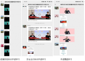 根据实际情况,本次手语活动共分为两个阶段进行。第一阶段是手语基础的了解和学习。即从基础的拼音入手,到日常的单词学习,之后再到简单的日常会话,从简入深,由易到难,逐步提高大家的参与积极性和学习兴趣,满足服务对象生活中的基本运用。第二阶段则是手语提升学习,包括疫情防控手语用语、文明安全出行知识以及《美丽中国》手语舞蹈等内容。这一阶段从满足服务对象切实需求层面提升到丰富其业余生活层面上,提高了大家的手语能力和水平。