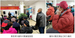 活动伊始,听力康复机构的袁老师向大家介绍目前的听障人群现状,令大家震惊之余更加关注听力健康问题。随后,她围绕听力下降对人们生活和工作的影响、影响听力的因素、以及如何预防听力下降等方面进行诠释,并对现场服务对象提出的困惑给予有效及时的回复。一位服务对象问到如何保护听力,如何正确地挖耳?袁老师表示:“大家可以通过保持身心愉悦、做耳保健操的方式来减小听力损害,同时尽量避免硬物挖耳,可以让家人帮助挖耳,必要时去医院解决挖耳问题。”袁老师从大家的实际情况和实际需求出发,增强大家的爱耳护耳意识和积极性。