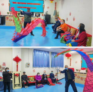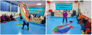 温馨家园园长赵和平在室内亲自示范了一遍如何挥舞彩带龙之后,又一一指导大家舞龙的技术要领。你瞧,学员邵叔叔动作轻柔缓慢,手中的彩龙是那么的优雅飘逸;学员陶叔叔舞起龙来又快又有力,给人激越奔放之感;学员蔡阿姨边舞边走,让龙显得更加灵动,真是又飒又美……学员们的精彩表演不时引来阵阵掌声。