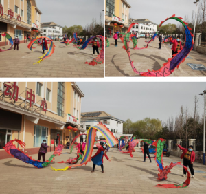 狭小的室内,限制了学员们舞龙的拳脚,温馨家园门前的广场可给了大家集体展示的机会。15名辖区学员奋力挥动手臂,以横“8”字形舞起手中的彩带,顿时,一条条长长的彩龙时而腾起,时而俯冲,时缓时急,蜿蜒翻腾,场面甚为壮观!