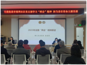 为深入学习贯彻全国“两会”精神,加深党员群众对两会精神的理解学习和准确把握,提高其责任感和使命感,4月14日上午,香蜜湾社区党支部邀请到顺义党校彭春燕老师,为社区二十余名党员就全国“两会”精神进行深刻解读。