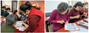 活动中,非遗传承人柴老师通过现场演示来展现剪纸艺术的魅力,同时融入红色故事,让大家感受党为了人民的解放和民族的独立兴盛而艰难奋斗的伟大意义。随后,大家在柴老师指导下,纷纷参照作品底稿进行学习创作。一笔一描、一剪一划中虽透着手艺的稚嫩,但大家那认真而热忱的态度令人动容,他们以饱含真情的剪纸作品向党的二十大献礼。邢阿姨说:“虽然耗工夫,但是有幸能用自己创作的剪纸作品向敬爱的党献礼,很有成就感,觉得无比光荣。”