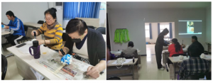 活动开始前,社工和几名志愿者一起布置活动场地,准备活动材料,待一切就绪后,活动正式开始。老师首先为学员们简单介绍了扎染的起源、种类和特点,然后一步步为大家演示如何进行捆绑和染色。学员们看得仔细,听的认真,待老师讲解结束后,就迫不及待地尝试起来。一开始,大家都想做出跟老师一样的效果,后来在老师指导和自己创新下,通过捆绑出不同形状的“团”,创作出了属于自己的独一无二的作品。在经过24小时的固色和晾晒后,一个个完整且富有创意的扎染作品就呈现在了大家眼前。