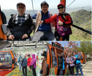 为了帮助大家获得更好更极致的登高体验,残联工作人员决定让大家搭乘观光缆车去更高的地方观赏美景。在志愿者带领下,大家乘坐无障碍电梯来到缆车站台,分几小组搭乘缆车。置身天空,俯瞰连绵起伏的高山和莽莽苍苍的山峦,仿佛梦中一般,几分兴奋几分新奇,同时还不忘分享着今天的喜悦。待活动接近尾声时,艺风文化社的摄影艺术家刘德祥老师为本次所有参与者拍了一张大合影,为拓展活动画上了圆满的句号。