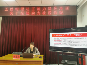 接着,柳岸方园社区书记张爱民从大数据时代背景出发,提出基层社区工作者要做到三个“更新”:一要更新大数据理念;二要更新社区管理方法;三要更新宣传引导方式。他还借助案例深入浅出的和大家分享了社区以“党建为抓手,开展社区各项工作”、“党建协调,群众协商”等具体工作内容。