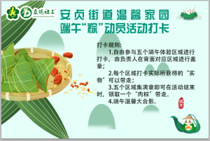本次活动为了给予辖区残疾人朋友新颖、精彩的参与感受,现场为大家设置了五个端午打卡区域,寓意着“五福临门”,且残疾人人手一份端午专属的参与卡,凭卡通关。