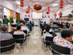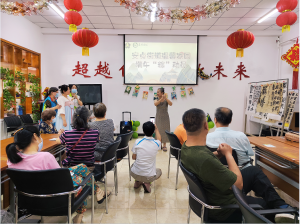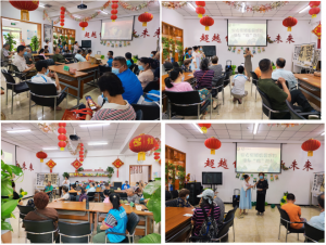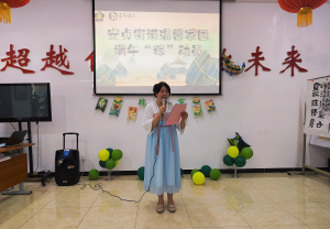 今天,安贞里社区残联专干金婷老师亲自“上阵”主持。她穿着一身“现代汉服”惊艳而来,给现场人员带来了视觉上满满的新鲜感。上午9点半,金婷老师准时开场,带领大家走近端午。