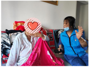 当来到香榆园新回迁的肢体残疾人马某家时,看到因癌症化疗而掉光头发的马女士时,赵园长鼓励她打起精神,好好配合治疗,不要轻易放弃,并向她介绍了关于申请护理补贴的政策规定。马女士表示自己不想再折腾去重新申请鉴定变更残疾等级了,只想安静度过剩下的时间。社工对其选择表示尊重,并宽慰她,如果看不了电视就多听听广播,听歌听故事都行,学会转移自己的注意力来减轻痛苦。