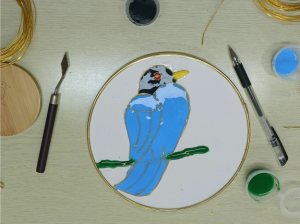 掐丝珐琅,又称“景泰蓝”,历史文化悠久弥长,是我国非物质文化遗产。它以其细致和精美的制作工艺赢得了参与成员的喜爱,激发起大家浓厚的兴趣。社工先向大家介绍了掐丝珐琅的历史、制作工艺、流程及注意事项,随后为成员们发放材料包,接着带领大家进行描线、掐丝和粘丝。社工指导的耐心,成员们也做的特别认真。瞧那栩栩如生的花朵、麦田和鹦鹉,辅之以五颜六色的变换了形态的彩沙,更加显得流光溢彩。大家禁不住拿起手机,将这一美好画面定格在记忆中,化为永恒。