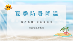 随着天气渐入伏天,为了帮助辖区残障人士应对持续高温的闷热天气,增强大家防暑降温意识,提高其高温预警自防自救能力,2023年7月10日,后沙峪温馨家园在线上微信群内开展了防暑降温知识宣传活动。