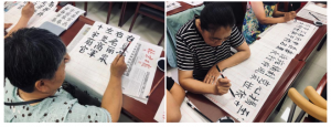 参加此次活动的不仅有残疾人,还有爱好书法的居民小朋友。活动中,书法老师简要为大家介绍了中国书法演变的历史,然后从最基本的执笔姿势和写字坐姿开始教起,指导大家如何运笔、如何掌控笔速,详细说明每个笔画的特点和技巧以及书写时应注意的事项,并亲自示范基本笔画的书写方法。参与成员认真倾听,仔细观摩,然后在宣纸上一笔一划书写起来。