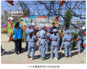 三、宣传倡导,以点带面。如小小志愿服务队借助街道亮马河的环境宣传工作,开展“赏碧波 绘生活”活动。另外,富有趣味性与实用性的大兴区红色农场实践活动,使得小队伍的号召力、影响力进一步扩大。当天,30余组青少年家庭积极参与,不仅让孩子们体验了农场的朴实生活,更让孩子们切身感受到党务实勤劳、不脱离群众、不断自我革命的优良作风,做到了“接地气”式培育队伍。