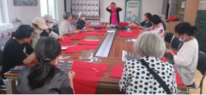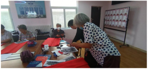 活动中,热爱剪纸艺术的环保队能人张阿姨以老师身份向大家介绍新的剪纸技巧和操作要领,并鼓励大家围绕本次活动主题勇于尝试,大胆展现自我。其他成员备受鼓舞,按照张阿姨教的剪纸方法,左手红纸,右手剪刀,小心而又很自信地裁剪起来。在“一片红”的场景中,一幅幅鲜活生动的剪纸作品相继完成,并承载着队员们对党的感恩与敬仰之情被装裱起来。