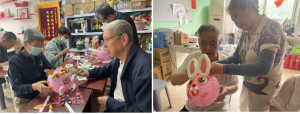 活动伊始,社工首先带领参与成员们回顾了中秋节的由来,以及“做花灯、品月饼、猜灯谜”等习俗,并将制作材料分发给大家。伴随社工对灯笼制作方法、技巧和步骤的讲解,大家拿起手中的材料一一对照,并积极动起手来开始制作。期间,一些成员在社工所说技巧的基础上充分发挥想象力,对灯笼进行DIY创新;而这边个别成员进展比较缓慢,社工则手把手地进行指导。在大家欢声笑语中,小兔子、龙宝宝、小狮子等多彩灯笼相继诞生了。大家拎着灯笼,借合影留念之机,共同祝愿伟大的祖国繁荣昌盛、国泰民安。
