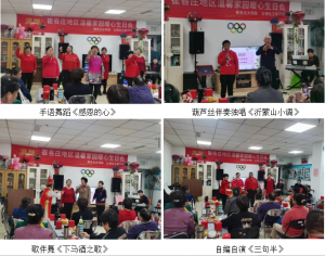 接着正式进入活动重头戏——风采展示。参演人员为了保障今天的活动顺利开展,在此之前多次进行排练。努力终没有白费,包括小合唱、独唱、对唱、朗诵、舞蹈在内的20余个节目,个个精彩,为众人呈现了一场视觉和听觉盛宴。悠扬动人的歌声、曼妙优美的舞姿、深情感人的朗诵无一不令人沉醉其中,特别是自编自排自演的《三句半》更是说进了每个人的心中。如此出色的表演,背后离不开温馨家园合唱团5名伴奏老师的给力伴奏。现场,大家载歌载舞,好一番热闹欢乐景象。