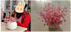 活动伊始,社工首先向大家介绍串珠的基本原理、所需要的材料、步骤和注意事项。在分发完材料后,社工又手把手地示范如何串珠、绕线、组合。大家认真倾听,仔细观察,将每一个步骤暗暗记在心里。串珠过程中,参与成员互相“取经”,探讨技巧,或因出错而互相打趣,还时不时请教下社工,现场一片欢快融洽的气氛。