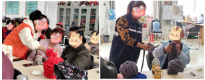 “手指围巾有别于传统棒针编织,动动我们的手指就能织一条围巾。像这样先打个结,套在食指上,然后从手背方向一圈一圈绕……”跟着社工的讲解,参与成员有模有样地学起来。“不要绕的太紧,要松一点。”随着社工细致而又慢节奏的解说,团在一起的毛线在大家手中慢慢成型,最后被贴上泡芙花,这样,一条软糯厚实又充满爱意的手织围巾就做好啦!望着手中的成品,一位成员禁不住感叹到“现在竟然用手指就能编一条围巾,挺神奇!”另一位成员接着说道:“是啊,我居然也学会编围巾了,太开心了!”