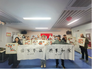课堂上,国画牛老师以“柿”为题,借用“柿柿如意”之寓意,为大家送上美好祝福。随后,牛老师利用墨色的深浅和层次性以及笔势的走向,细致入微地向参与成员讲解作画的步骤,包括如何调色、下笔等。成员们听得认真,画得也非常小心,每一次下笔都透着斟酌。