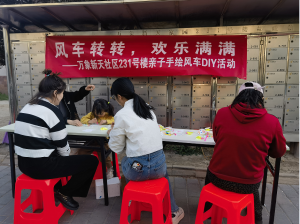 2024年4月20日,万象新天社区联合德邻社工在231号楼1单元门口开展“风车转转·欢乐满满”手绘风车亲子活动。该活动旨在为居民家庭搭建一个参与融合、互动交流的平台,共同营造温馨和谐的邻里氛围。