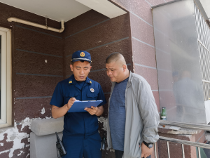 最后,消防员与物业人员、协管员共同对楼门安全情况进行巡视,并相互沟通巡视结果。他们仔细检查楼道、楼门口等处的堆物堆料情况,提醒居民不要在楼道内堆放杂物,以免造成逃生通道拥堵,妨碍他人。