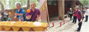 本次趣味运动会设有趣味保龄球、趣味乒乓球、趣味投壶、投沙包、垃圾分类、大投篮快运乒乓等6个项目。当天上午九点,伴随着轻快的音乐,运动会正式开始。共建单位志愿者化身裁判员,组织项目参赛人员先进行适应运动,并说明比赛规则。随后哨声响起,比赛正式开始。
