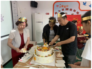 最后,伴随着《生日快乐》的音乐,成员们开始切、分蛋糕。一边品尝着香甜的蛋糕,一边拉着家常,每个人的脸上都洋溢着幸福的笑容。