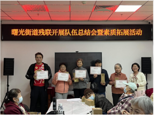 10月21日下午,曙光街道残联在曙光温馨家园召开了队伍总结会并开展了素质拓展活动,旨在表彰助残工作中的优秀队员,增强队伍凝聚力和团队协作能力。