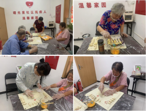 活动中,温馨家园工作人员提前准备好面粉、芝士、蔬菜、培根等食材,并为参与成员耐心讲解如何做披萨饼底,怎样涂抹酱料、摆放配料以及打发和烘焙纸杯蛋糕等。成员们分组协作,有的揉面塑形,有的搭配馅料,有的专注烘烤,在轻松愉悦的氛围中体验着烹饪的乐趣。