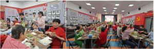 接下来的共餐会又掀起了一个活动高潮。由残疾人家庭与蓝天志愿队精心准备的家常菜摆满了长桌:于凤艳阿姨的秘制红烧肉、王玉梅阿姨的清暑绿豆汤、宋春香阿姨的田园时蔬……每一道菜都承载着制作者的浓浓心意,四溢的饭菜香为现场增添了浓浓柔情。共餐期间,社工和志愿者穿梭其间,为一些行动不便者夹菜添饭,暖心场景令人动容。