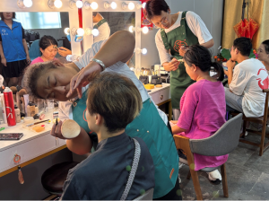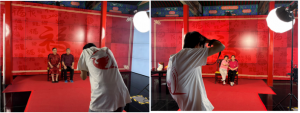 8月18日清晨,大栅栏街道温馨家园社工带领三名志愿者早早来到护国观音寺活动场地,与工作人员一起进行场地布置。铺背景、调灯光、摆道具,每个细节都反复确认,只为给残疾人家庭铺就一条“幸福红毯”。