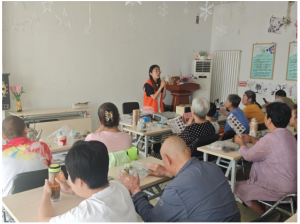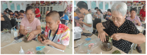 活动现场,温馨家园的工作人员提前准备好了各类材料和工具,包括造型各异的玻璃容器、品种多样的绿植、色彩斑斓的装饰小物件等。活动开始后,社工向大家详细讲解了微景观种植的步骤、技巧以及注意事项,并从基质的填充、植物的搭配到装饰物的摆放,每一个环节都进行了细致示范。