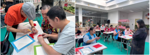 在学员们的热情建议下,这最后一次活动将在“立体玫瑰”的学习中度过,以玫瑰的热烈、深情来表达对家园所有社工、老师的感恩之情。活动期间,牛老师把“立体玫瑰”的花瓣、花叶、花茎分开进行示范讲解。她先带大家折红纸,然后将其修剪成花瓣的样式在掌心悄然绽放;再领着学员回顾画笔的起落走向,使叶与茎轻轻“落”在纸上,并手把手示范手腕发力的小窍门,只几剪,便生出最挺拔的茎、最灵动的叶。接下来就是“栽花”时刻,社工协助学员把剪好的花瓣、茎、叶组合好贴进相框,再微调角度、压实花茎……就这样,一朵朵鲜艳的“玫瑰”承载着学员们的美好祝福相继盛放。