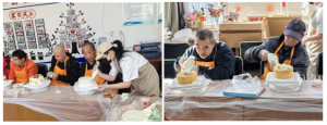 活动中,职康站工作人员首先与家属进行深入交流,从生活自理能力提升到社交互动表现,详细分享学员在 “家、园” 双环境下的成长与进步,从而让家属直观了解学员近况,进一步凝聚家园共育合力。随后,生日会环节温馨开启。工作人员和社工带领学员及其家属一起制作生日蛋糕,大家分工协作,现场一片欢声笑语。伴随着香甜的蛋糕气息,在欢快的生日歌声中,大家为十月份的三位学员“寿星”纷纷送上真挚祝福,传递大家庭的温暖和关怀。