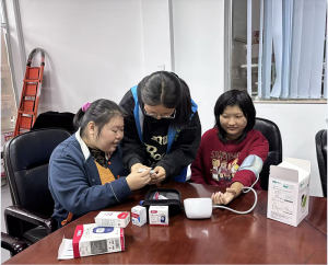 在寒气袭人的深秋季节,练一练八段锦不仅活血热身,还让人精神倍增,现场气氛也随之欢快起来。之后,社工为大家详细讲解“家用智能仪器血压计、血糖仪以及指氧仪”三个仪器的作用、使用规范及注意事项,并指导大家亲手操作仪器,熟悉测量过程。此外,社工还为大家讲解仪器出现故障时的简易维修思路和方法。“原来测血糖这么简单!家里闲置的仪器终于可以不再落灰了,也不用麻烦出去测了,在家随时就能知道测量结果。”