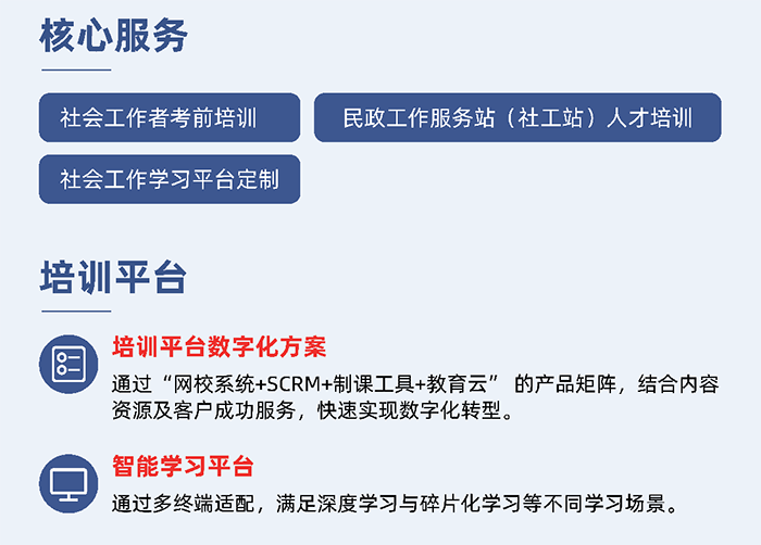 延伸:全周期继续教育——针对广大持证社工的持续成长需求,提供涵盖政策解读、前沿理论、专项技能在内的多元化继续教育课程,助力社工实现知识迭代与职业生涯的可持续发展。
