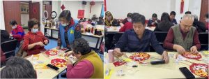 在接下来的活动过程中,社工全程陪伴在残疾人身边,耐心细致地为其提供帮扶。对于动手能力较弱的成员,社工手把手指导他们撕开背胶,协助其调整粘贴位置,鼓励他们大胆尝试;对于操作熟练的残疾人,社工则给予及时的肯定与表扬,引导他们发挥创意,稍作调整让作品更具个性。现场氛围轻松、欢快而又温馨。经过大家认真专注地制作,一幅幅色彩鲜艳、寓意美好的福字粘贴画相继呈现,与一张张笑脸相互映衬,画面无比温馨祥和。