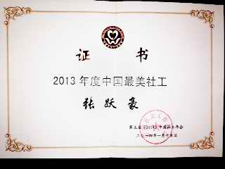 我所张跃豪荣获“中国最美社工”称号 编辑: peditor 作者:立德社会工作事务所 来源:立德社会工作事务所 2010年1月1日 0:00 阅读(5894) 我所社工张跃豪继获得2013年首度最美社工之后,在2014年1月15日召开的中国社工年会上又获得中国社工协会授予的“中国最美社工”。