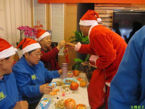 最后的环节也是大家最为激动人心的时刻,大家通过自己一年的努力,积攒了非常多的欢乐币,用这些欢乐币他们为自己换取了最喜欢的新年礼物,这份礼物是他们完全通过自己的努力来赢得的也是他们进步的见证,社工张敏扮作圣诞爷爷为大家发放新年礼物,礼物中有MP3、MP4、收音机、U盘等等,每位学员都急切的看着圣诞老人手中的礼物,用期待的眼神凝望着自己的新年礼物,拿到自己的新年礼物后特别开心。