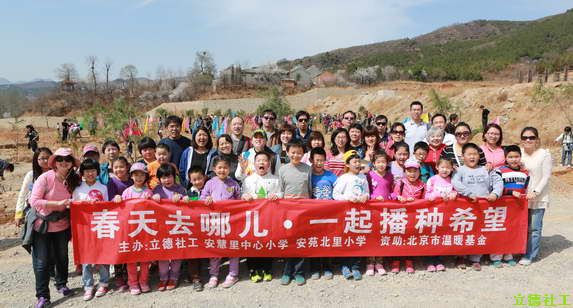 途径一个半小时我们来到了圣泉山。立德青少项目的负责人佟老师对活动的目的和意义做了简短讲话,因为主要是希望大家在活动中去感受、体会、总结,所以在提醒了各位一些安全注意事项后,植树活动正式开始了。大家以家庭为单位开始进行植树。每个家庭都有一个“指挥官”指导着谁来挖坑、谁来提水等。桐桐是我们三好学堂的学生,在这次植树活动中,表现的最为积极。他在妈妈的指导下,独自完成了挖坑、栽树、浇水等一系列重要的步骤,种上小树后挂上了他自己亲手做的牌子“心愿环”,从中看出了梁桐的用心。琪琪是我们三好学堂年纪最小的学生,经过与爸爸的分工协作,也种好了小树,挂上了自己的牌子“我和小树一起成长”。看到孩子们流着汗水、认真、勤劳的劳作,家长眼里有着肯定的眼神,也正是我们全体社工最初的心愿。
