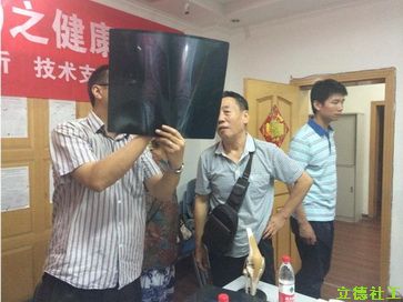 蒋大夫就着一个个问题回答,就着每个人的状况一一指导。并且用专门带来的仪器为大家检测腿部肌肉力量,检测我们膝盖的一种健康状况。每个人都检测到,每个人的情况,蒋大夫都记录下来,前期我们让居民带来了自己膝盖部位的X光片,结合这两项,蒋大夫专门针对每个人进行了病况解说,及注意事项。让每位参加的居民对自己的膝盖有了更清晰的认识,了解自己现在的膝关节的状况。
